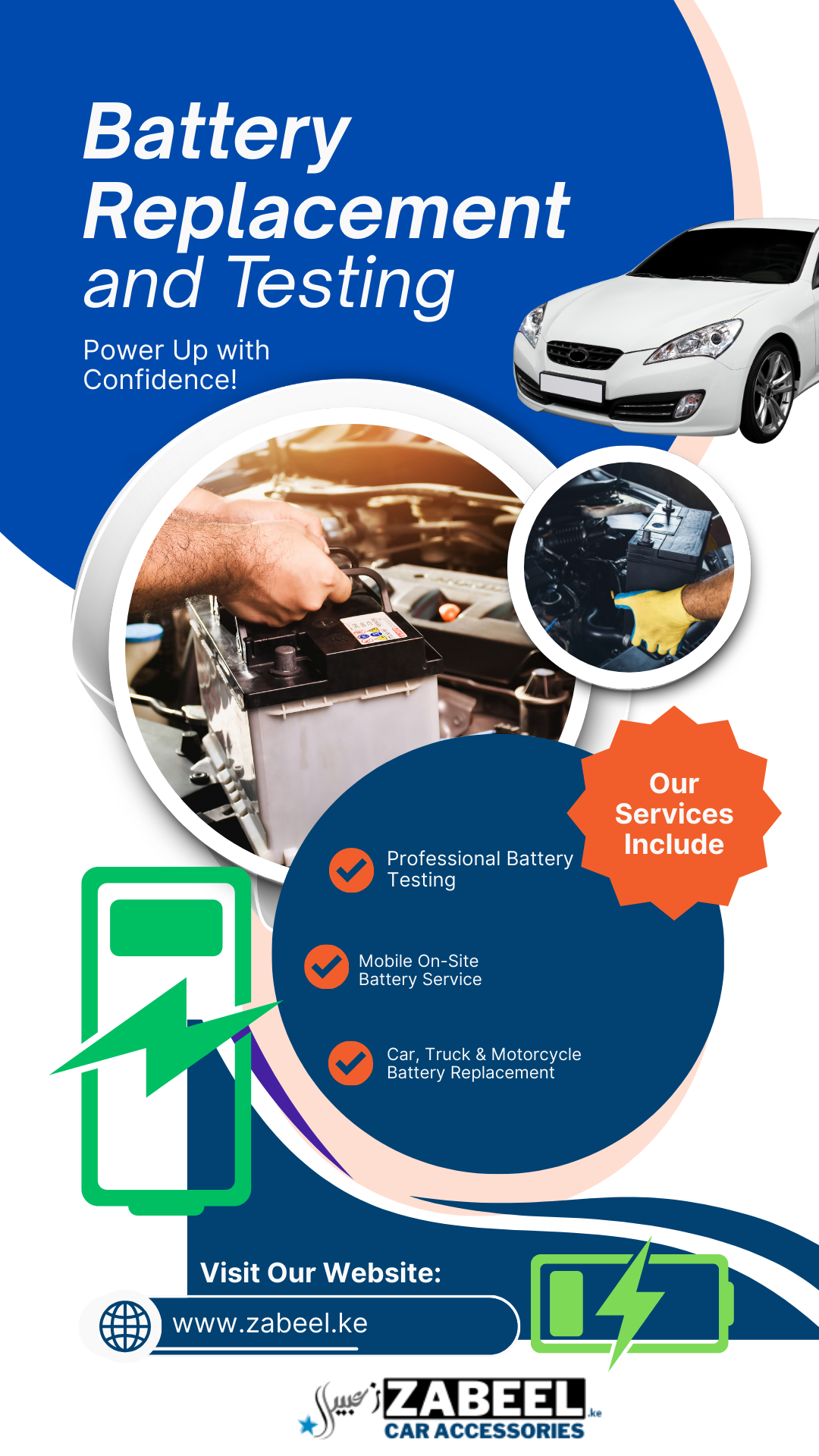 At Zabeel, our certified technicians bring the right battery + tools to your doorstep anywhere in Nairobi — and we safely dispose of your old battery per Kenyan environmental guidelines.